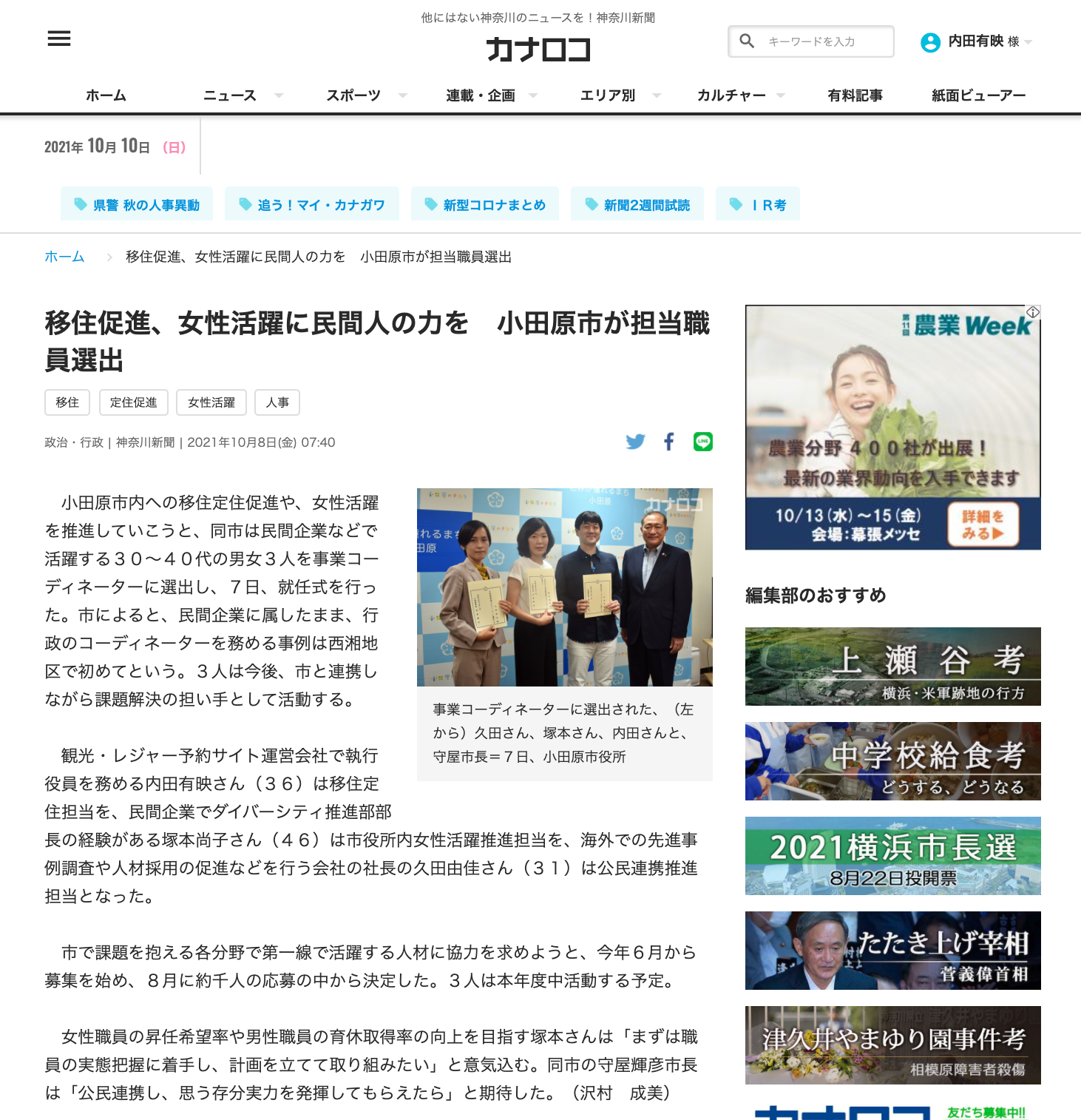 10月1日付けで、小田原市の外部人材として、公民連携プロデューサーに就任させていただきました。
